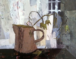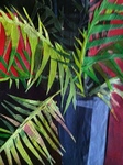 2012Compositie met rood zwart en groen van plantvorm in pot